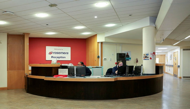 The Reception at Rosemere Cancer Centre. This is where you can check in for your appointments.